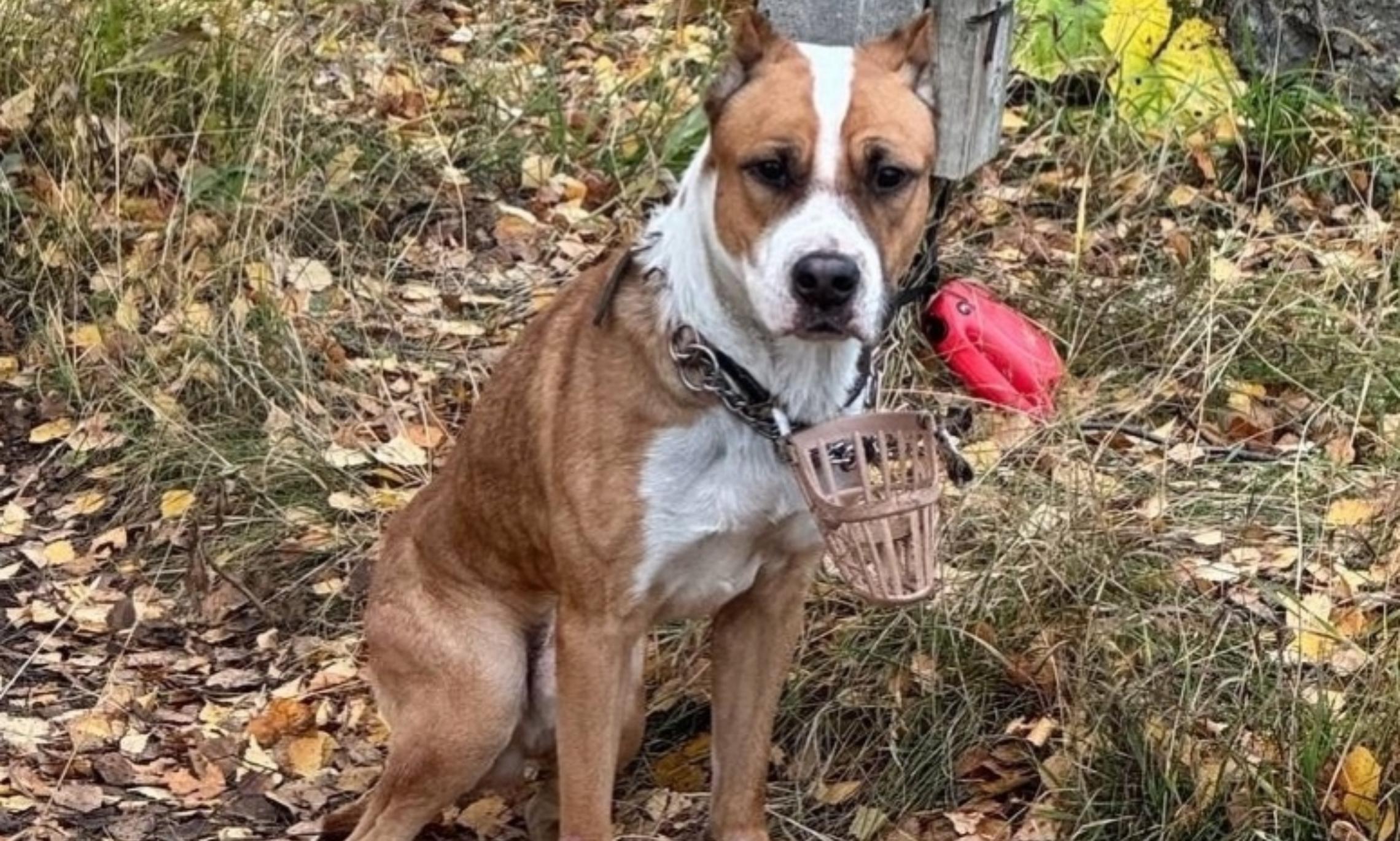 Неравнодушные жители региона спасли собаку, оставленную на улице в крайне тяжёлом состоянии. Животное обнаружили привязанным к столбу, в наморднике, без еды и воды.