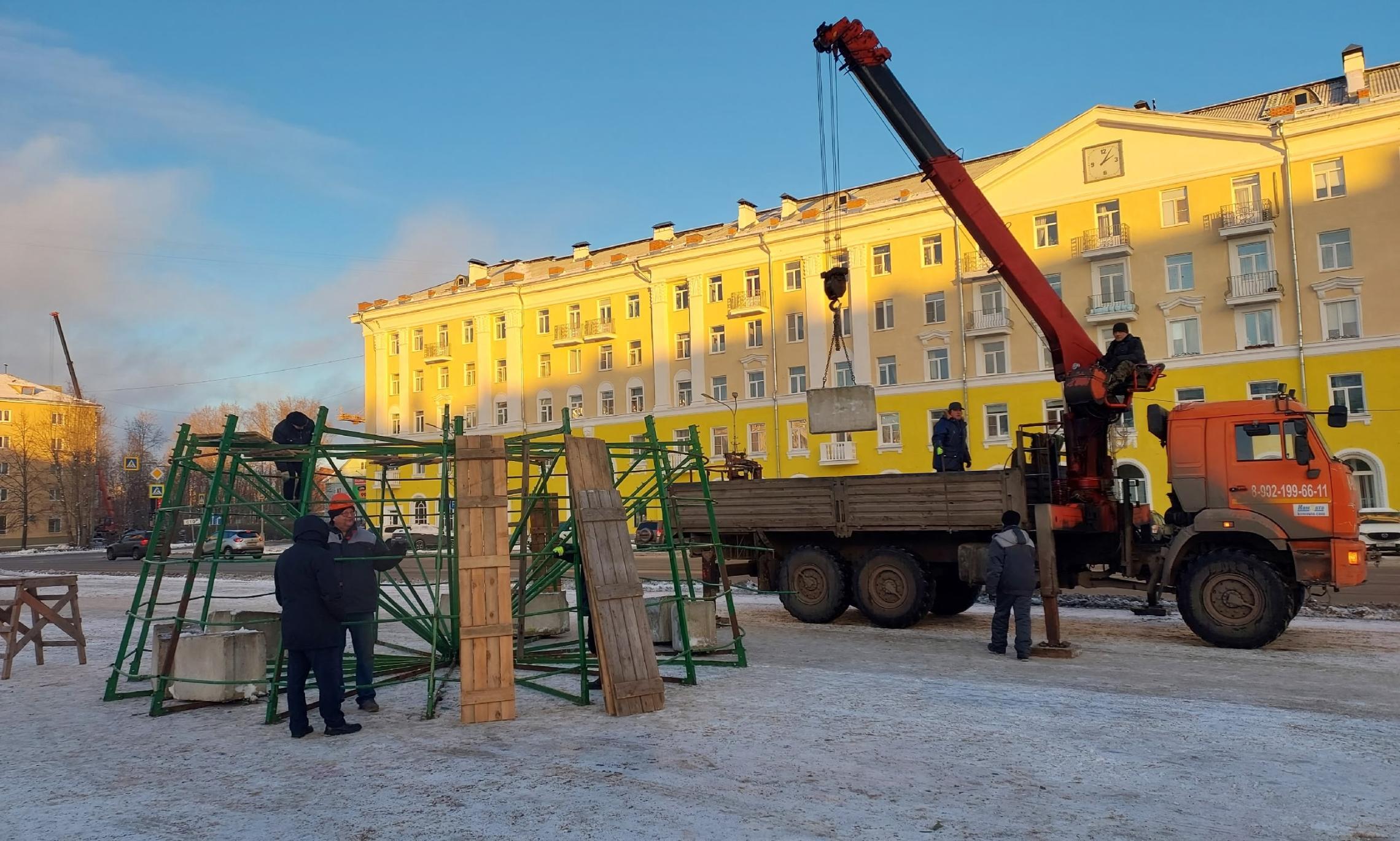 Напомним, в Архангельске продолжается установка главной городской елки.