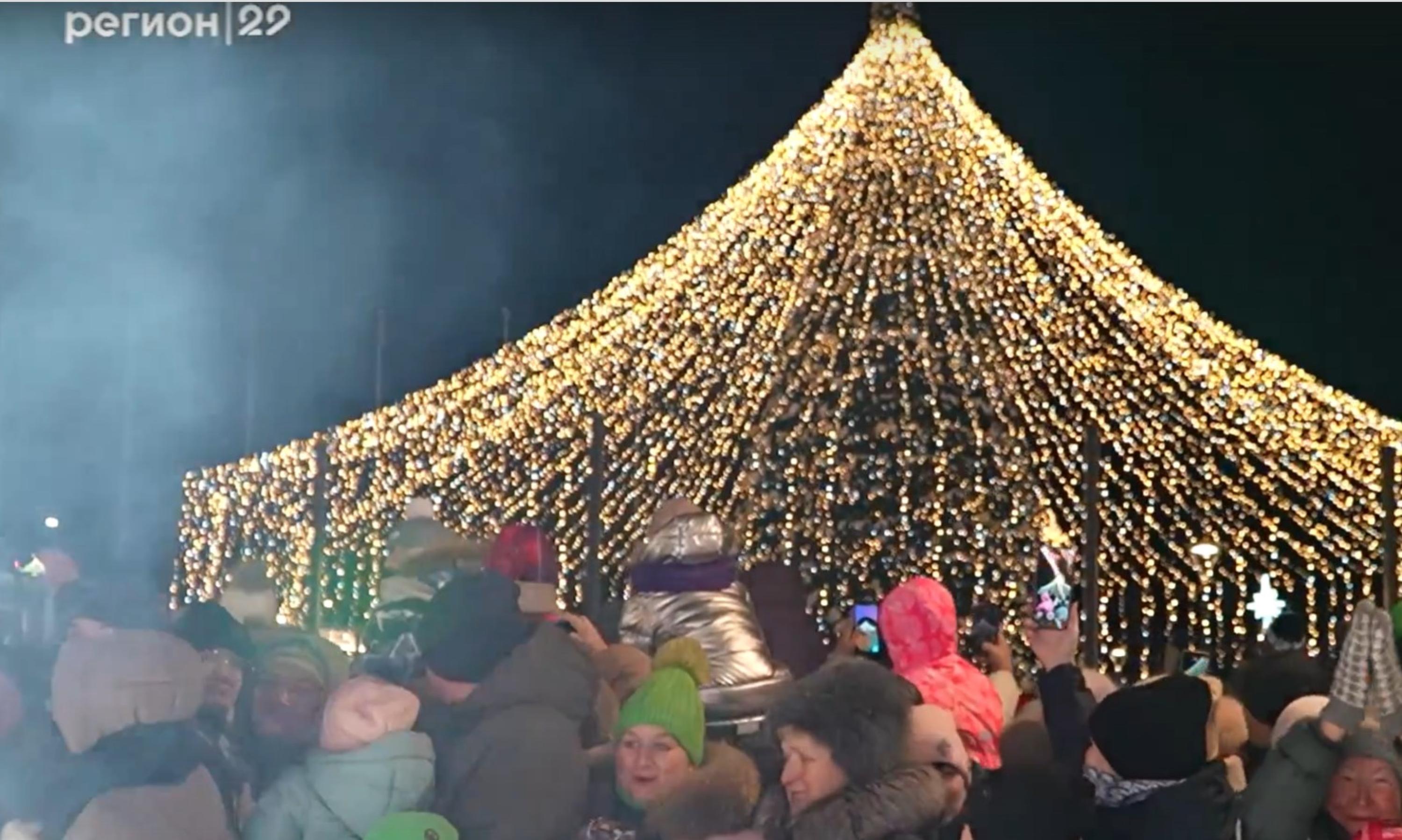 В Архангельске состоялась торжественная церемония зажжения огней на главной городской ёлке на площади Ленина. Праздник собрал множество семей, для которых организовали конкурсы, игры и новогоднее театрализованное представление.