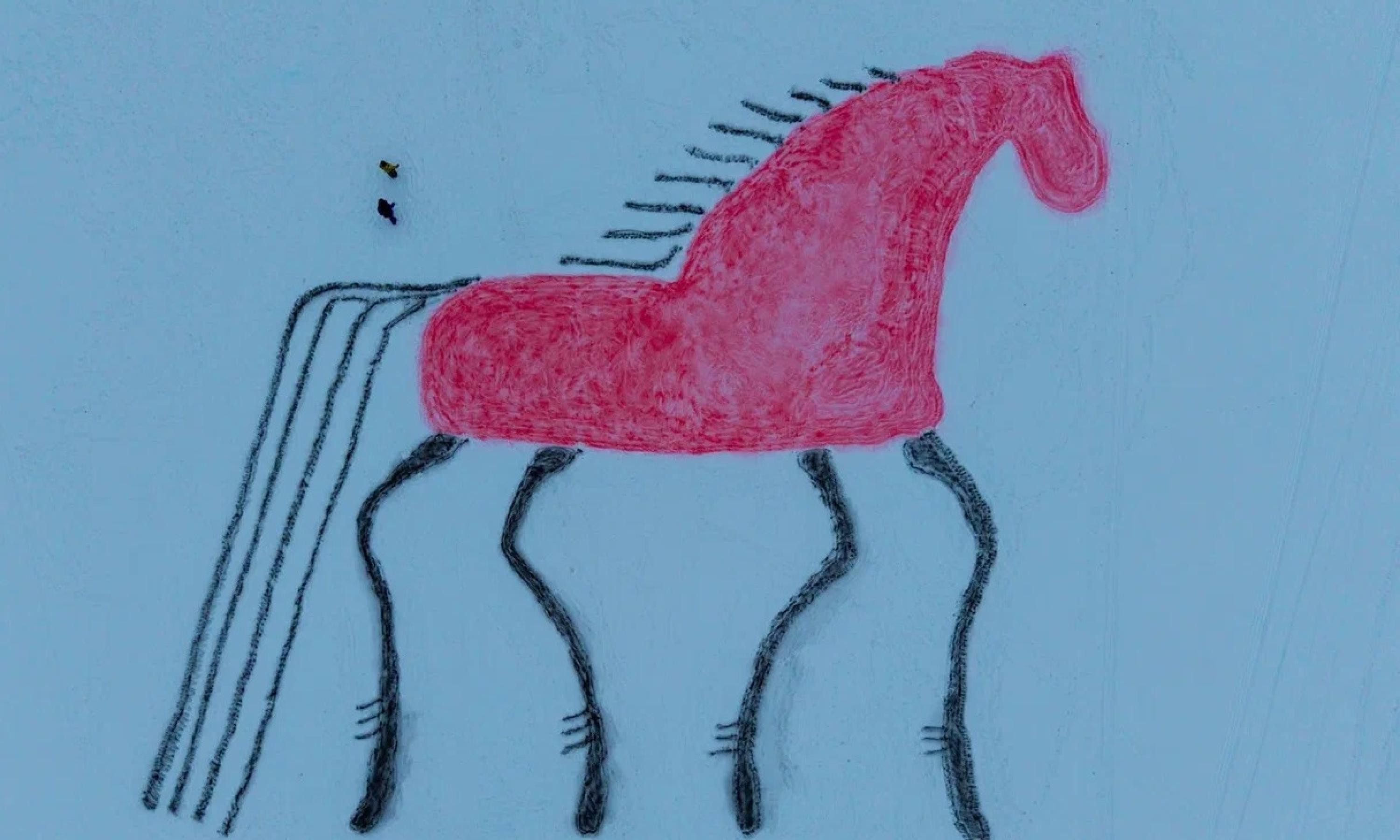 Лед озера под Архангельском раскрасил гигантский «мезенский» конь