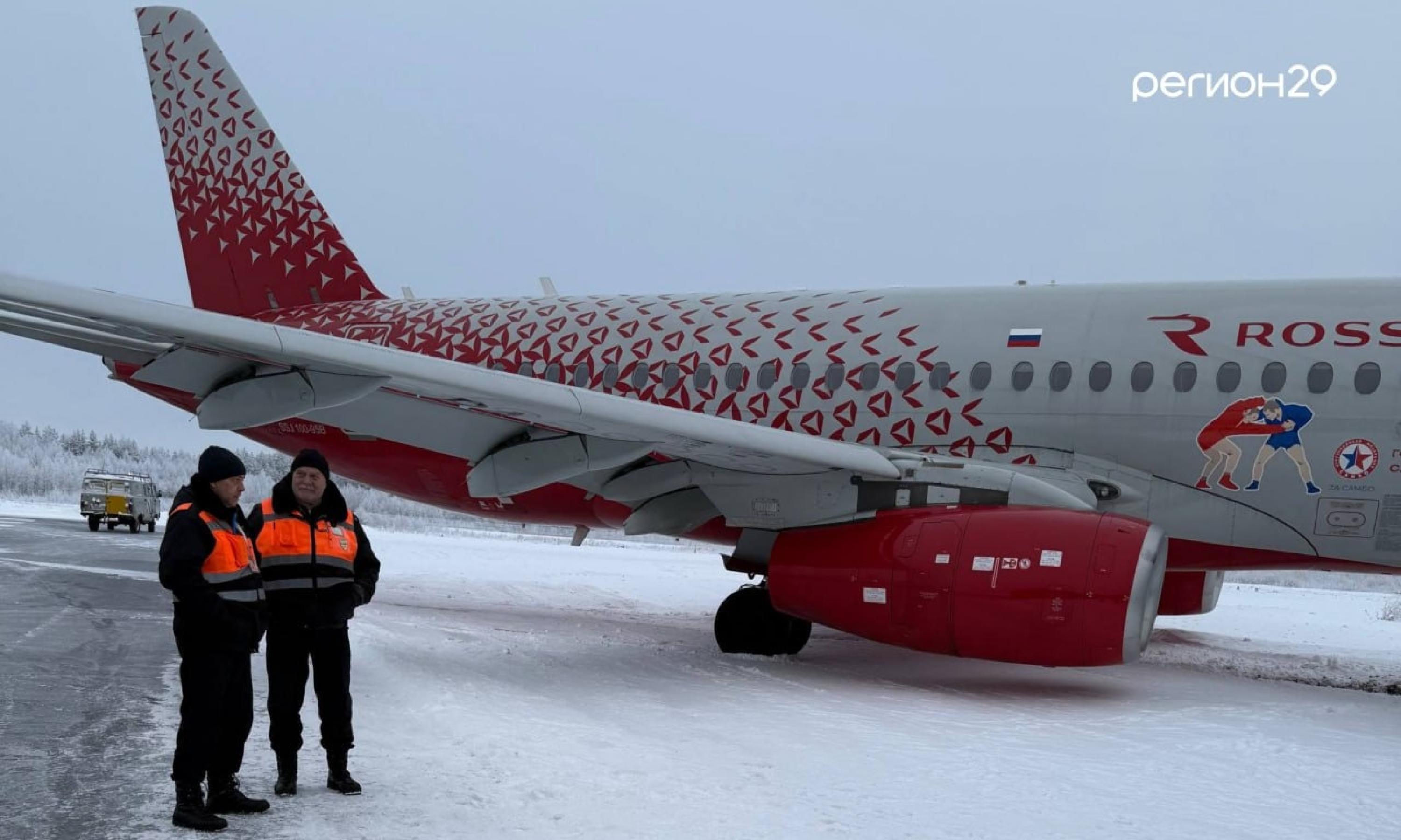 Самолёт выкатился за пределы взлётно-посадочной полосы в аэропорту Архангельска