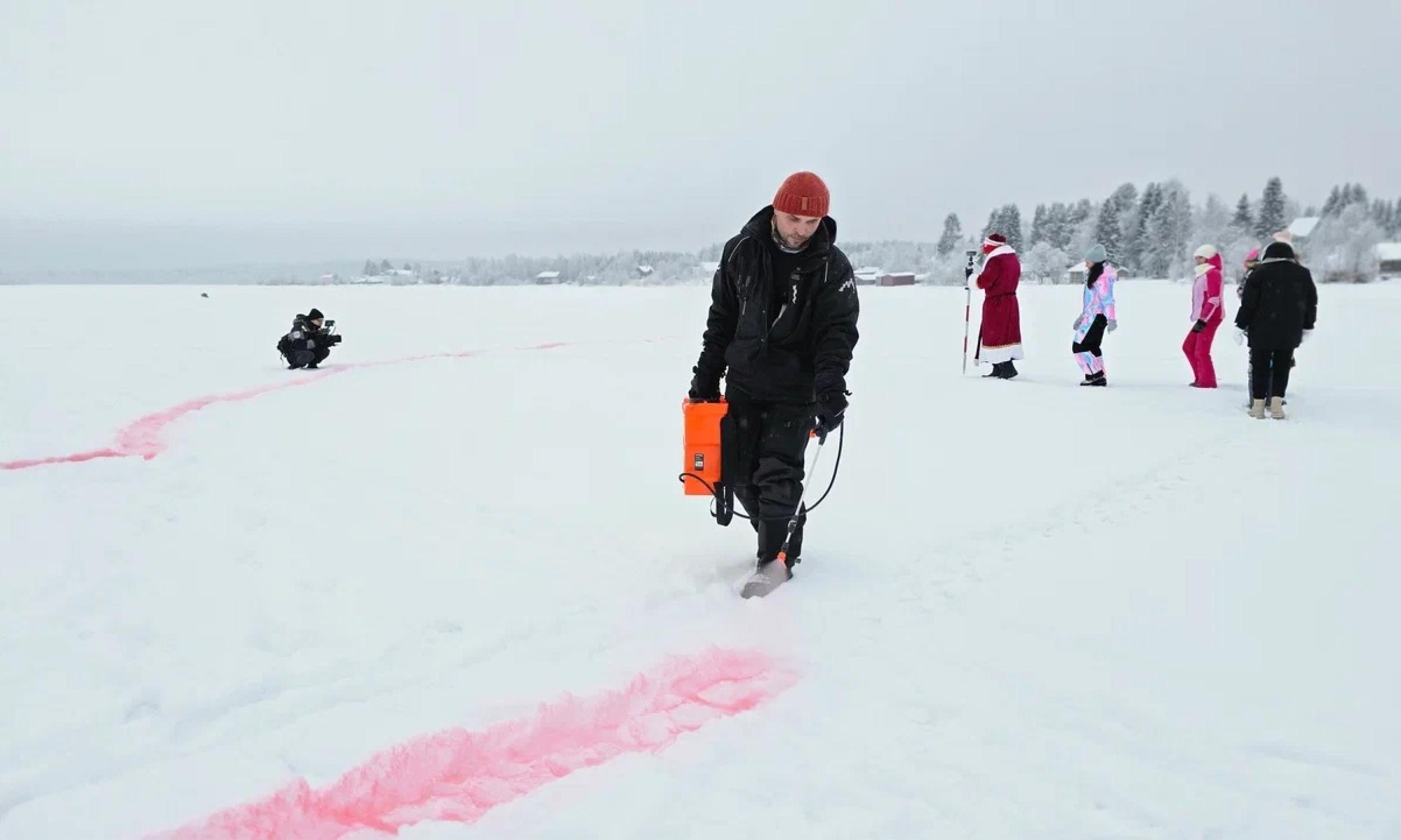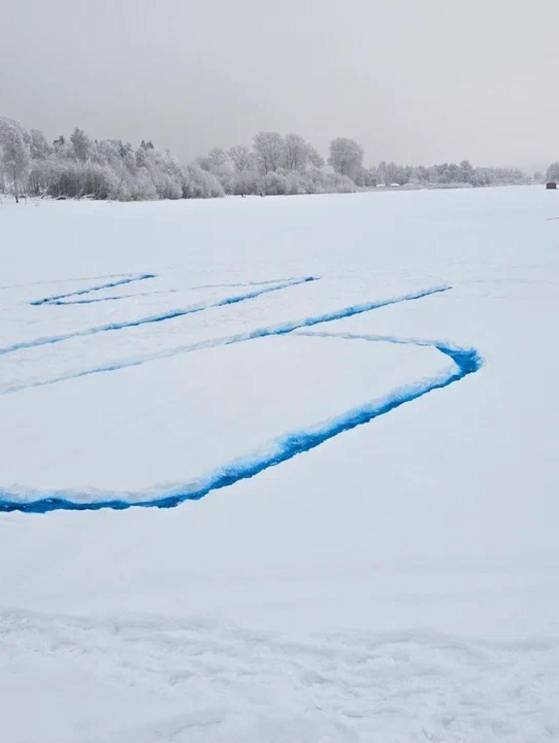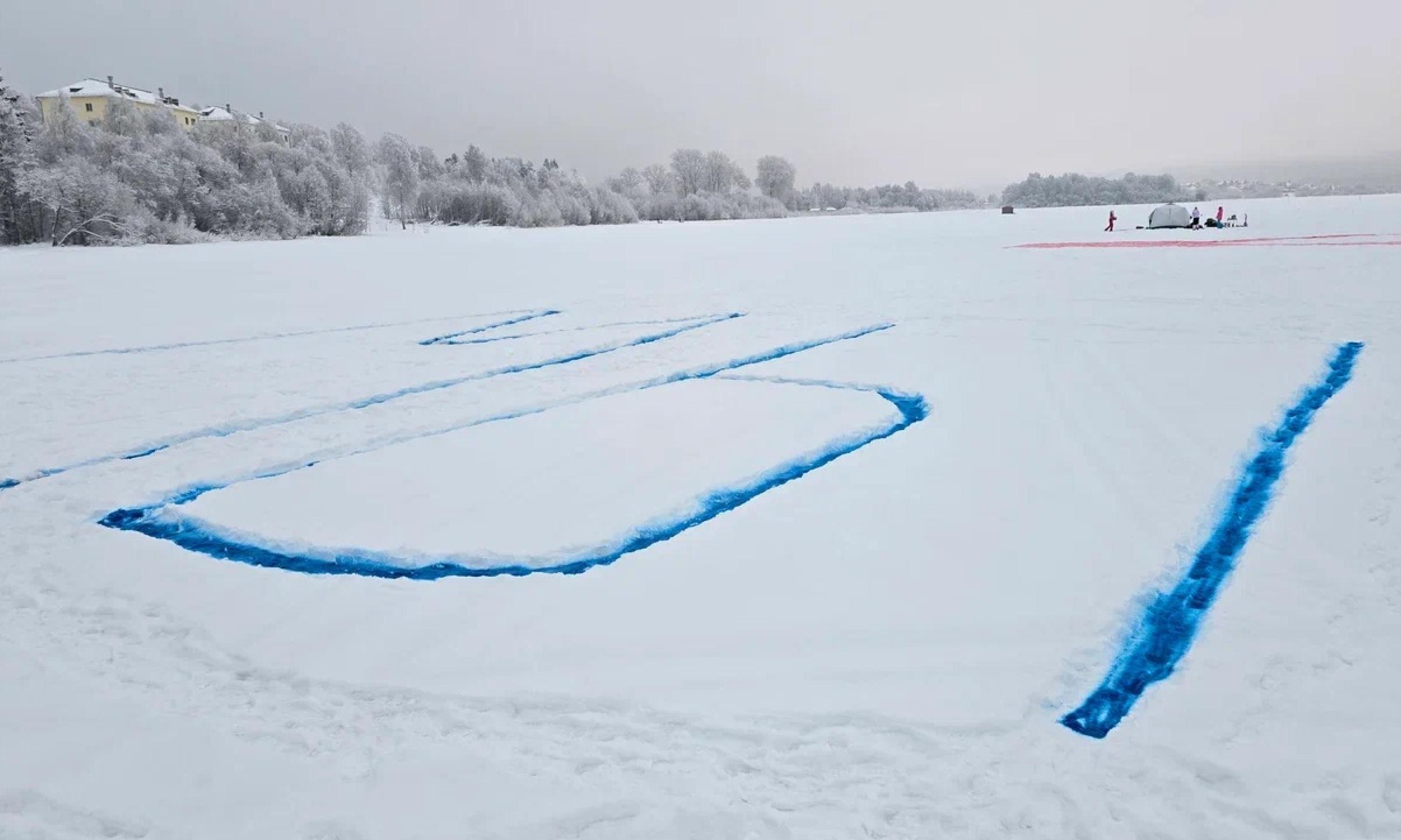 9 января ледяная гладь озера Лахта под Архангельском превратилась в гигантский холст, где расцвёл сказочный «мезенский» конь и признание в любви — «Мы любим Север».