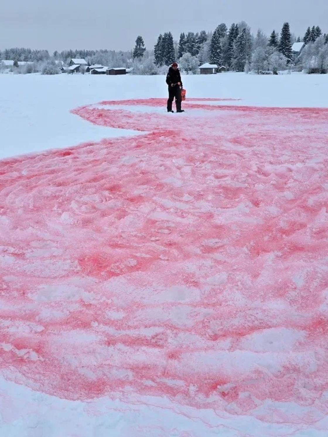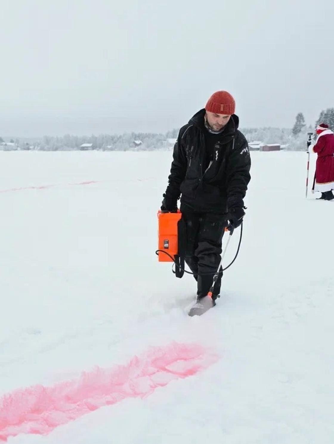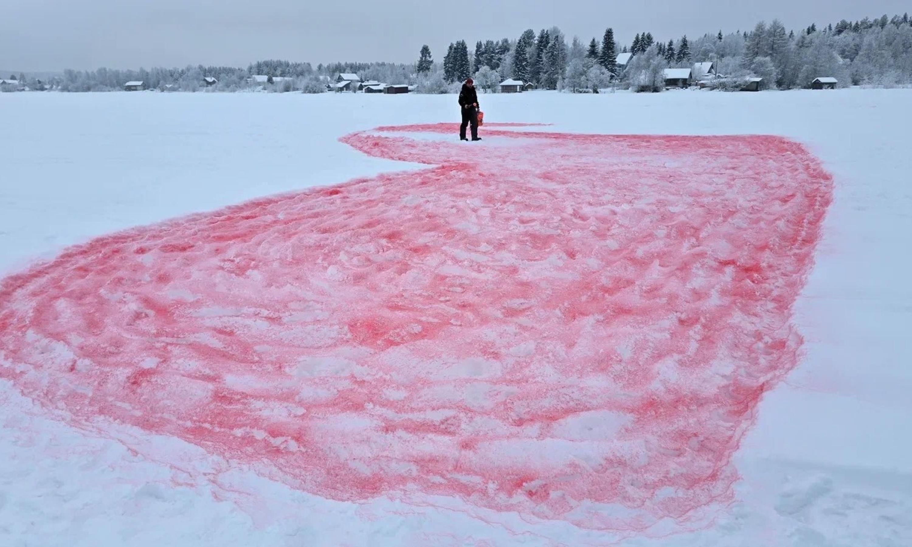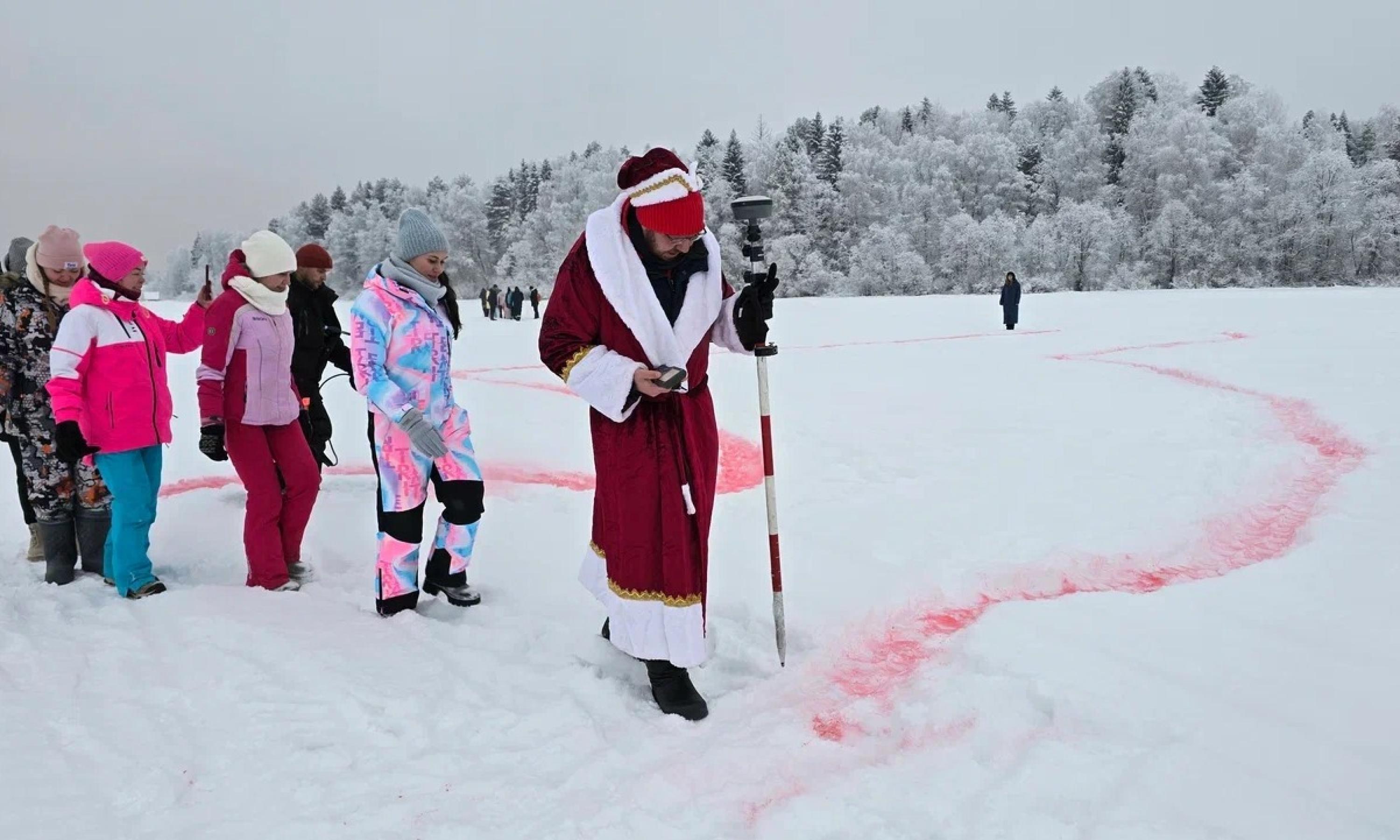 9 января ледяная гладь озера Лахта под Архангельском превратилась в гигантский холст, где расцвёл сказочный «мезенский» конь и признание в любви — «Мы любим Север».
