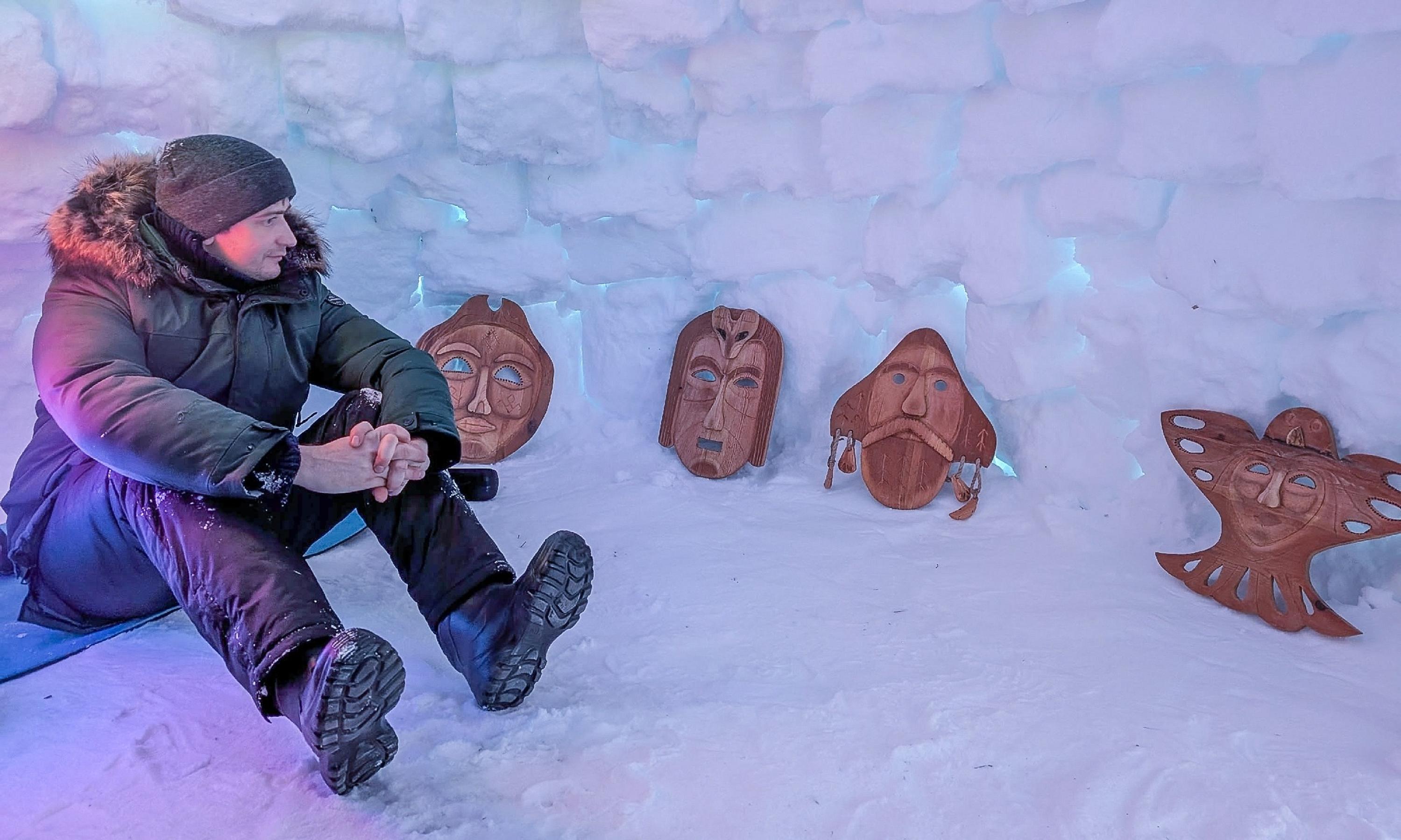 — Раньше строил в лесу, на берегу реки. Эта иглу у меня шестая, самая большая. Каждый раз строю всё больше и больше. Честно, идея изначально была просто построить, шашлыки пожарить. Потом уже мне захотелось испытать себя и заночевать. Я ночевал в Иглу в —37° и вёл прямой эфир, чтобы друзья могли видеть, что я там реально нахожусь, — рассказал Игорь Маслов.