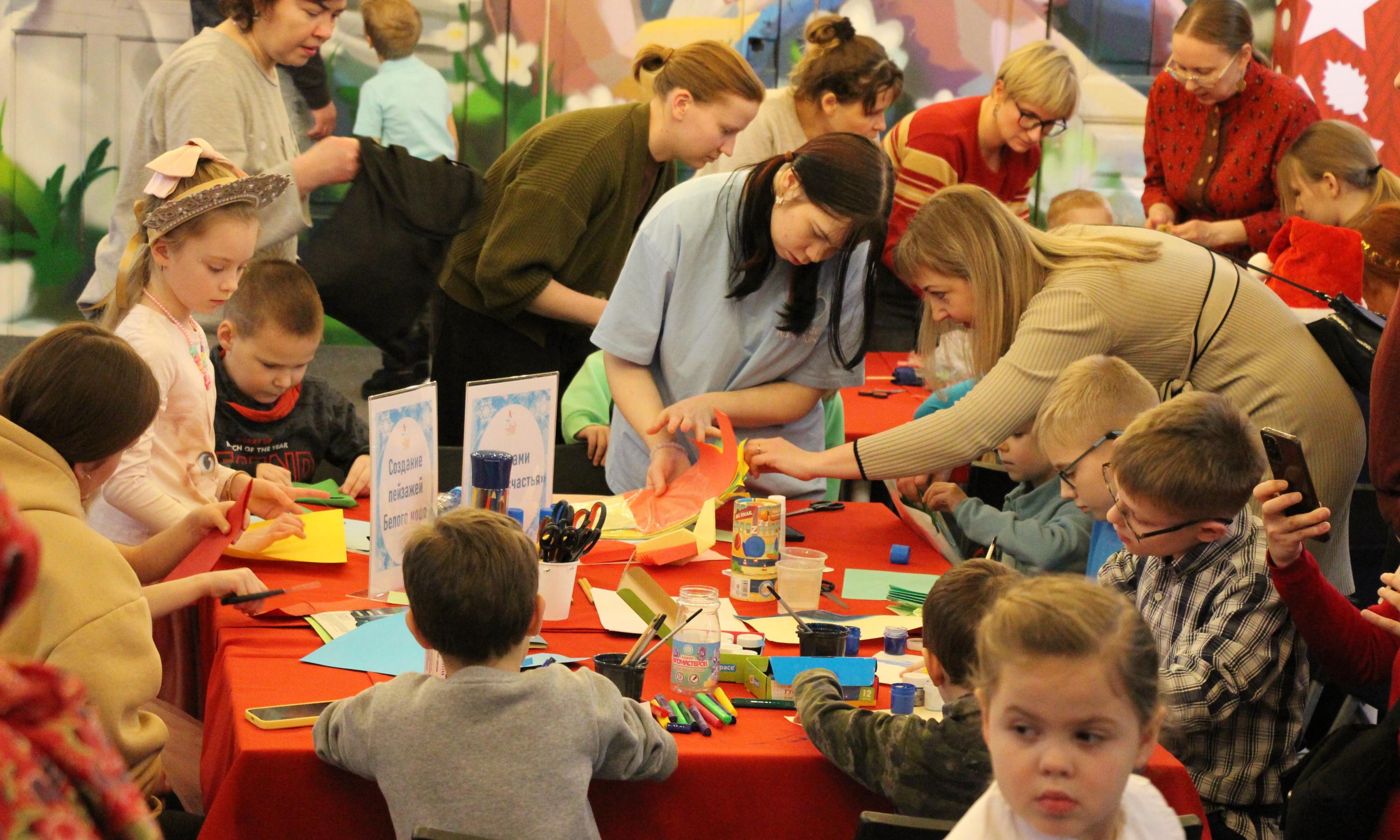 В рамках программы малыши вместе с родителями научились рисовать пейзажи Белого моря и северную роспись в мезенском стиле, делать своими руками оригами в виде «Птицы счастья» и мастерить куклы-обереги.