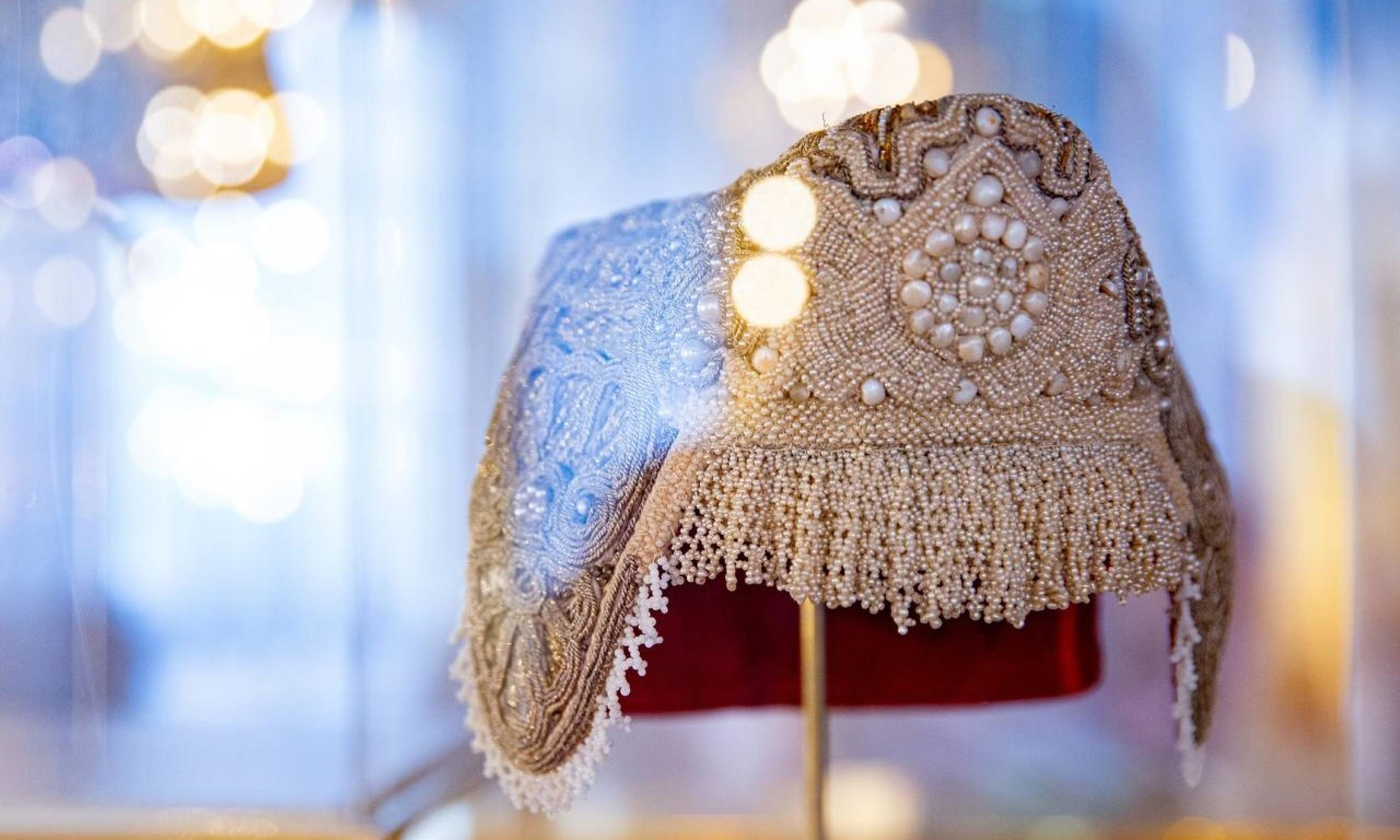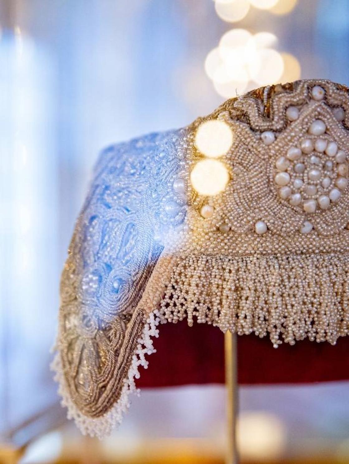 Экспозиция организована Каргопольским историко-архитектурным и художественным музеем при поддержке Министерства культуры России в стенах императорской резиденции. В нее вошли 60 музейных предметов, среди которых расшитые одежды представителей императорского двора из коллекции музея-заповедника «Царское Село», а также каргопольские кокошники, перевязки, платки и сороки, украшенные речным жемчугом и тончайшей вышивкой.
