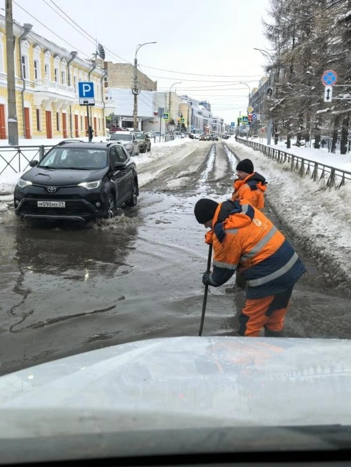 Специалисты уже работают на месте коммунальной аварии. Горожане были обеспокоены, что водой залило проезжую часть. Между тем, специалисты отмечают, что они убрали часть забора недалеко от Никольского храма для того, чтобы добраться до места повреждения. Воду с проезжей части уже откачали, а также убрали наледь.
