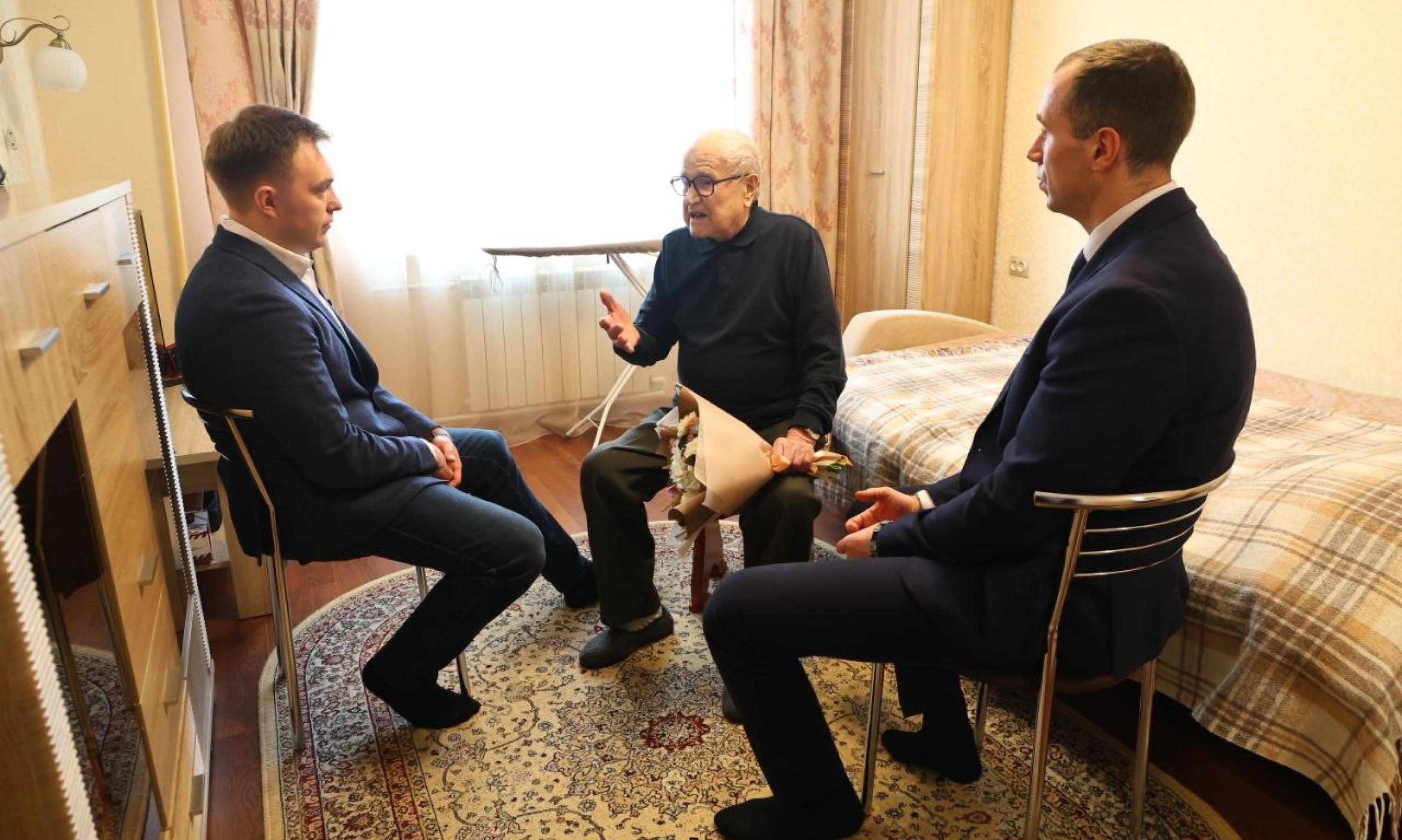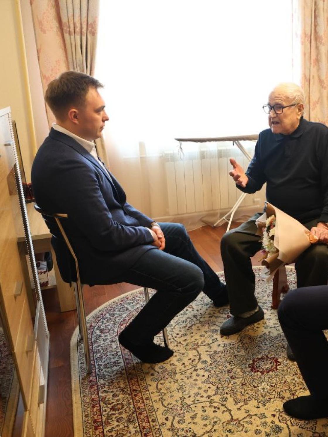 Первым, к кому заглянули организаторы акции «Мы помним!», стал участник Великой Отечественной войны Серапион Арсеньевич Галицин. Накануне ему исполнилось 99 лет. Ветеран тепло пообщался с гостями и напутствовал их на дальнейшие добрые дела.
