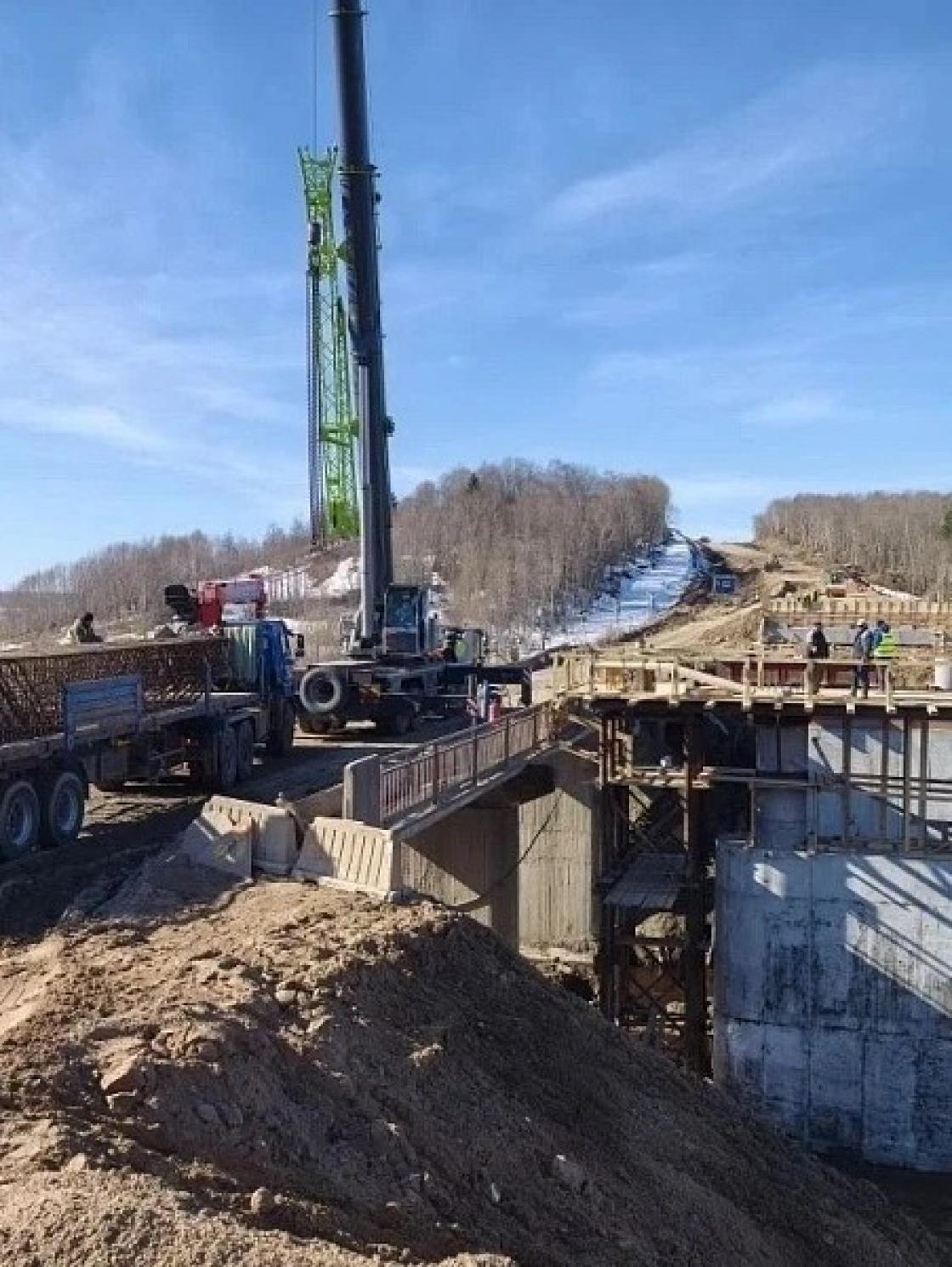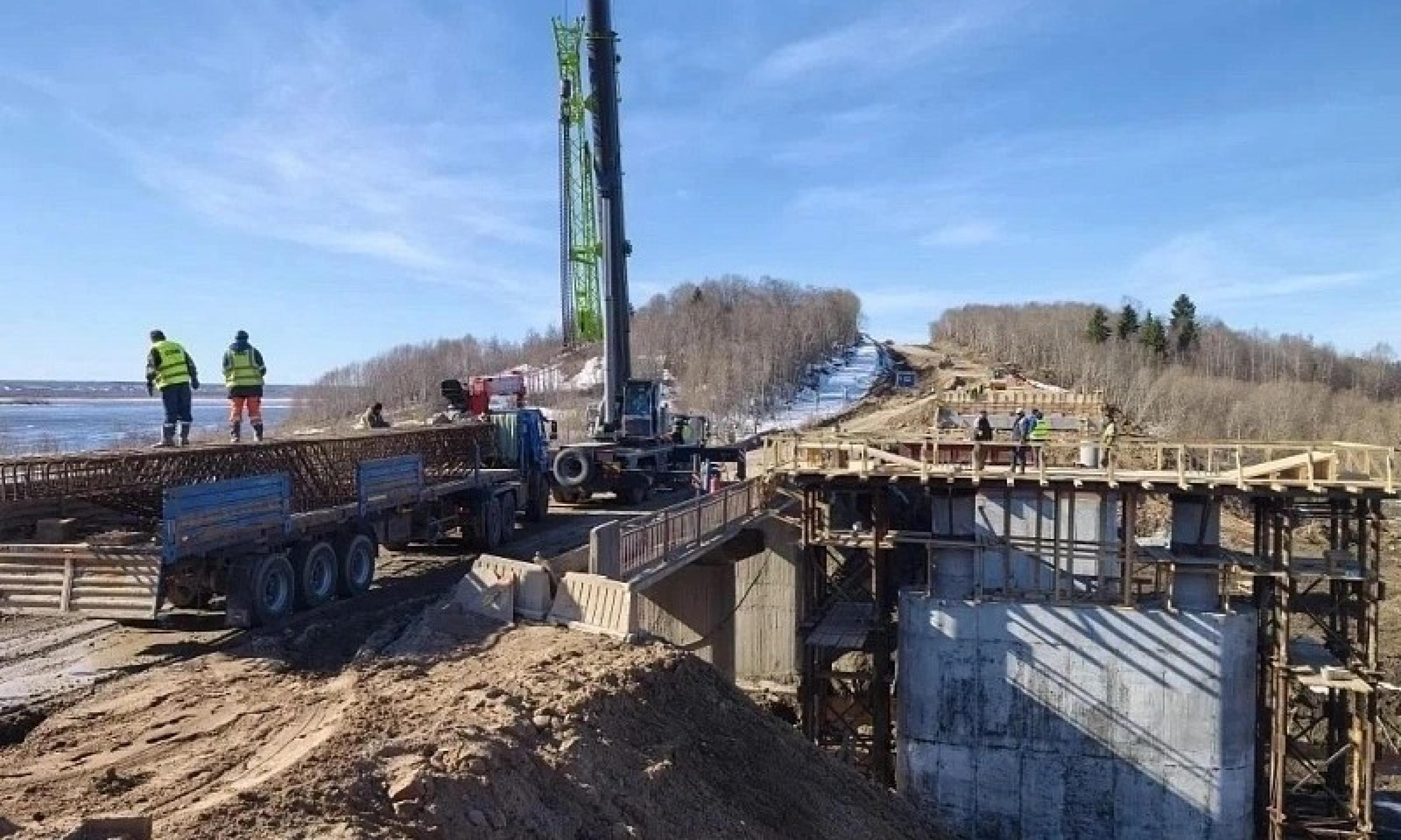 В Приморском округе завершают бетонирование опор моста через реку Вождоромку