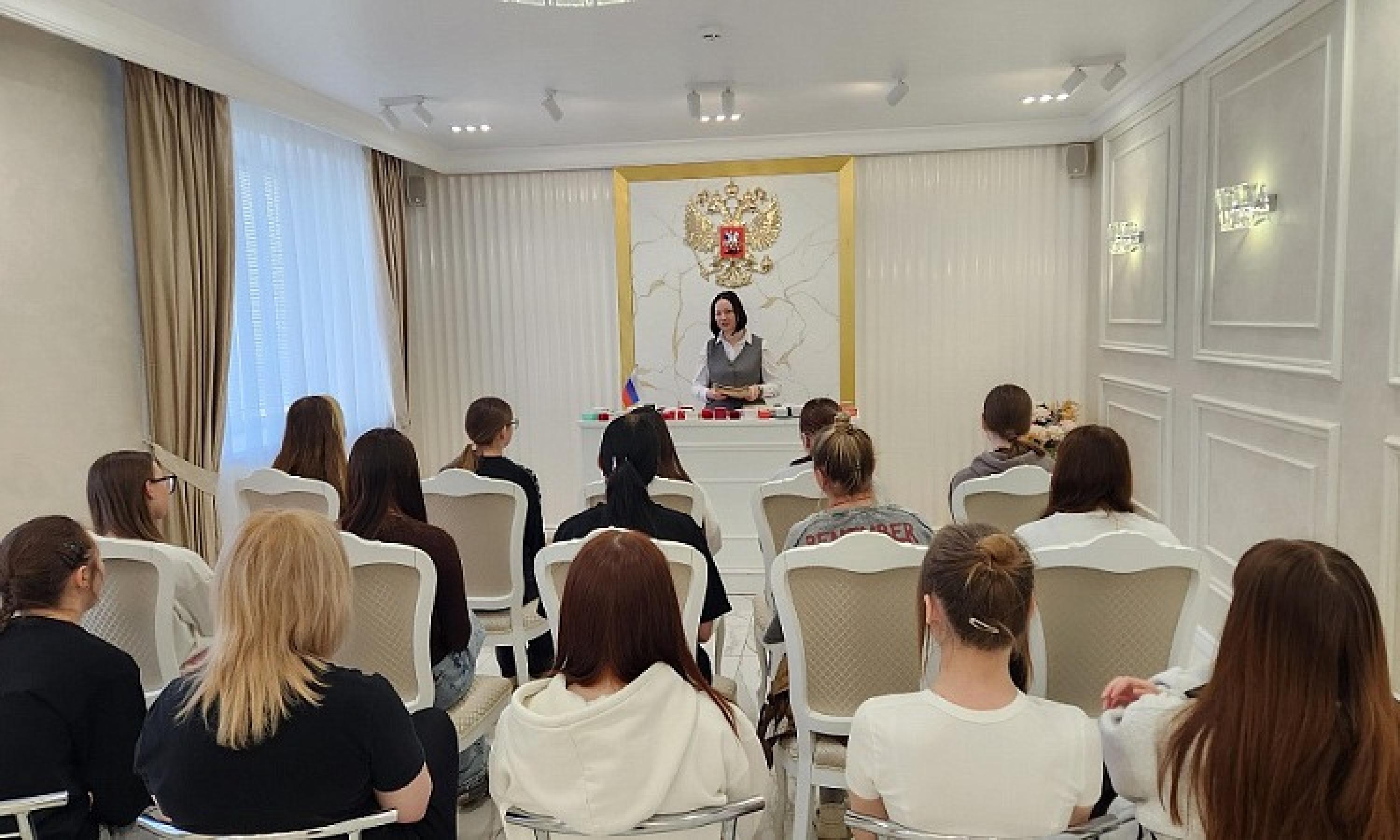 В рамках проекта в Котласе прошла встреча со студентками местного электромеханического техникума. Наталья Попова, руководитель межтерриториального отдела ЗАГС, разъяснила слушательницам правовые аспекты заключения брака, включая вопросы брачного возраста, имущественного режима супругов и наследования. Участницы встречи высоко оценили полученные знания.