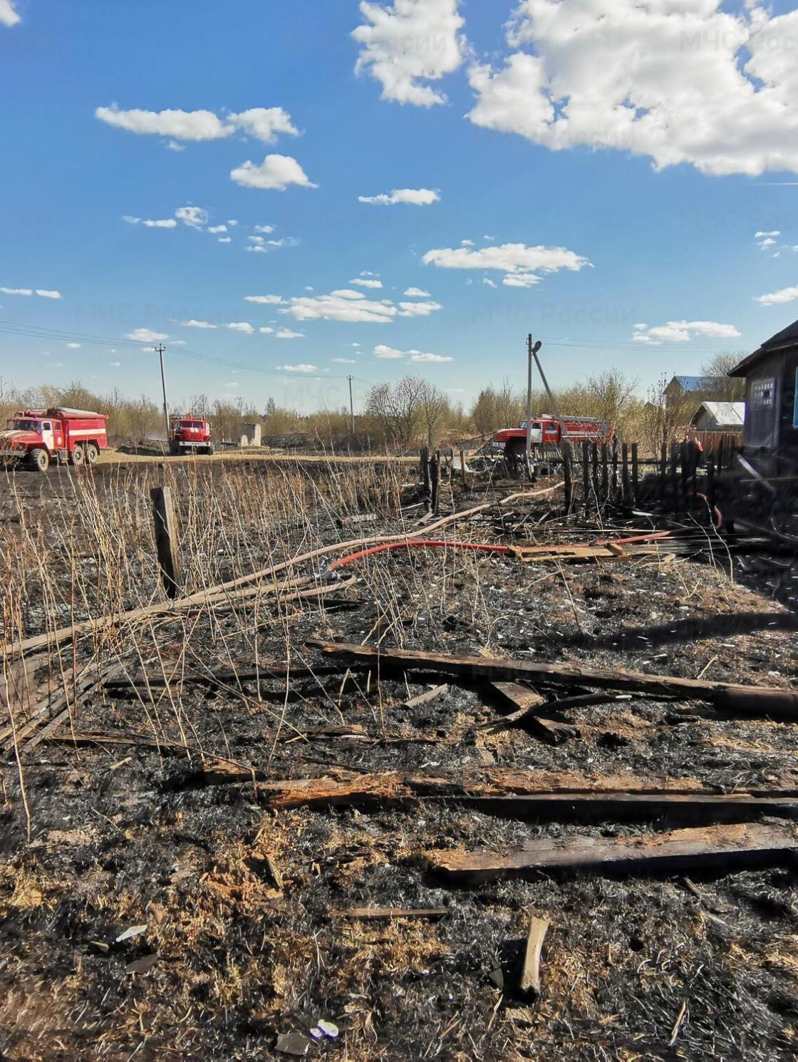 Огонь подступил к дому: в Вилегодском округе из-за пала травы едва не сгорели дом и баня