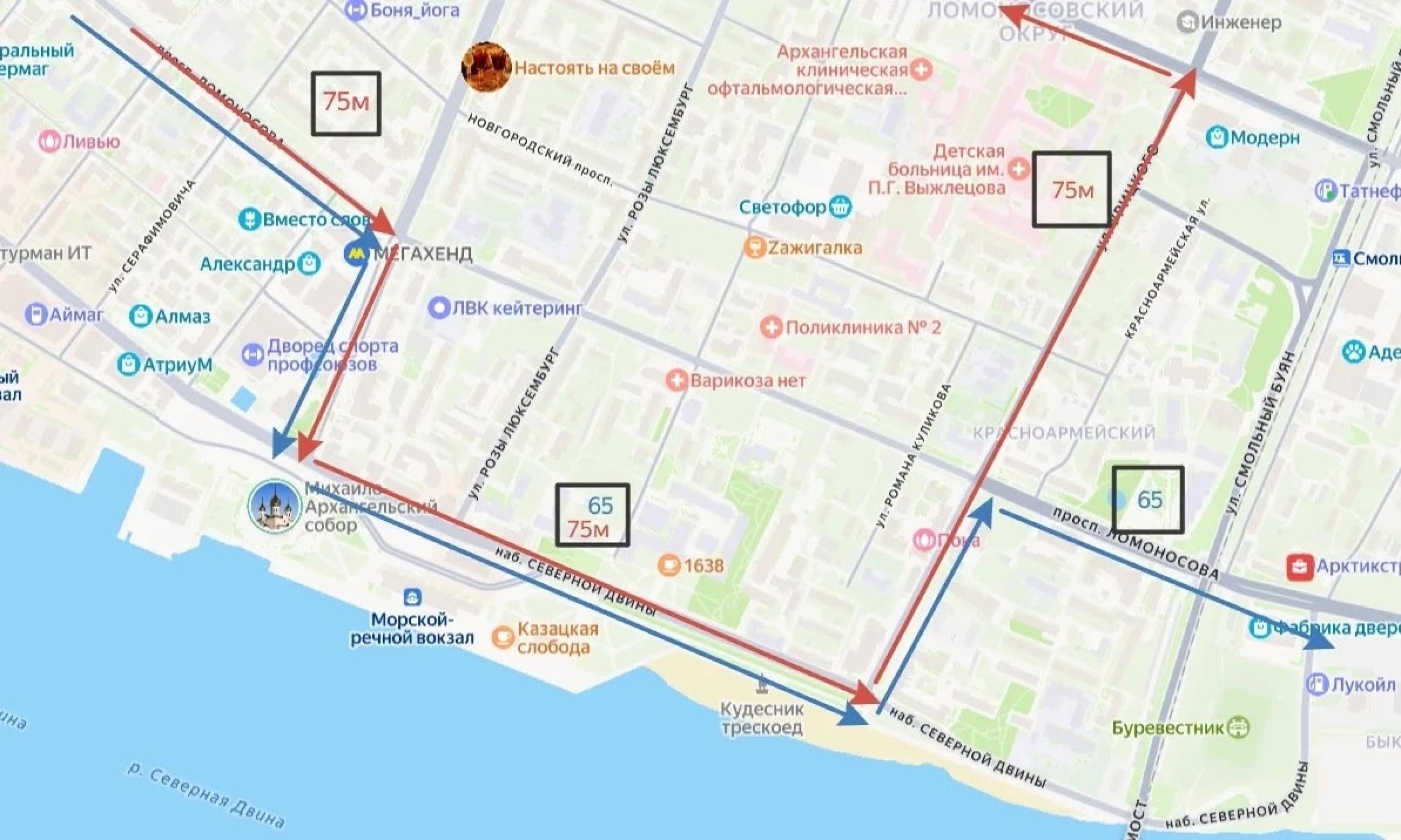 В Архангельске из-за перекрытия проспекта Ломоносова временно изменится движение автобусов маршрутов №65 и 75м